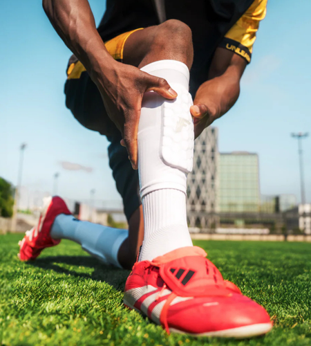 Nuestros manguitos ofrecen un ajuste firme y seguro que acompaña cada sprint, regate y frenada sin deslizarse ni perder compresión. Gracias a su panel protector HoneyShield™, la tibia permanece protegida en cada choque y entrada fuerte, reduciendo molestias e impactos repetitivos.